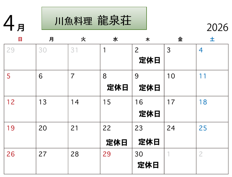 日頃より『川魚料理 龍泉荘』をご愛顧いただき、誠にありがとうございます。